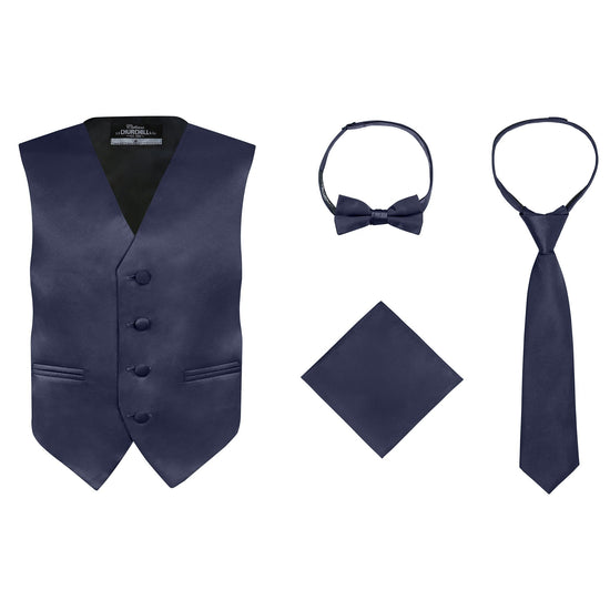 Boys 4 Piece Vest Set, with Bow Tie, Neck Tie & Pocket Hankie