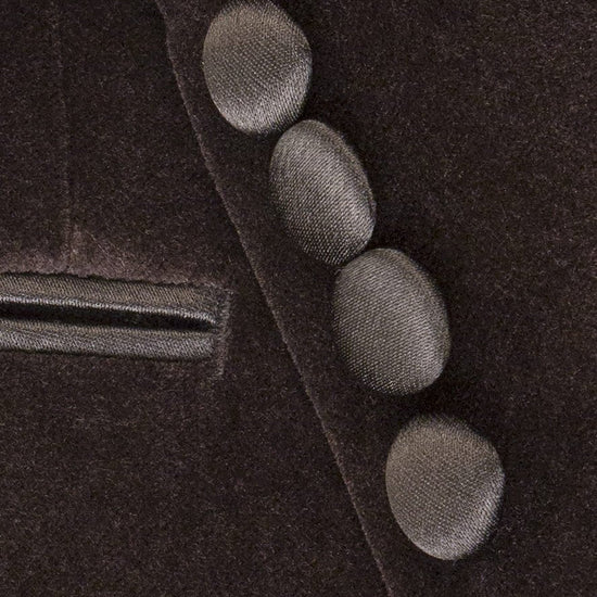 If you are looking for a classic one-button velvet tuxedo jacket with a peak lapel, then this Black Velvet formal jacket may be for you. It is a single-breasted peak Black Velvet tuxedo jacket that can be worn with any formal black tuxedo trousers. This tuxedo jacket looks good on any body type. You can't go wrong with this classic style. You can complement this tuxedo with a crisp white tuxedo shirt and a White or Black formal tie.