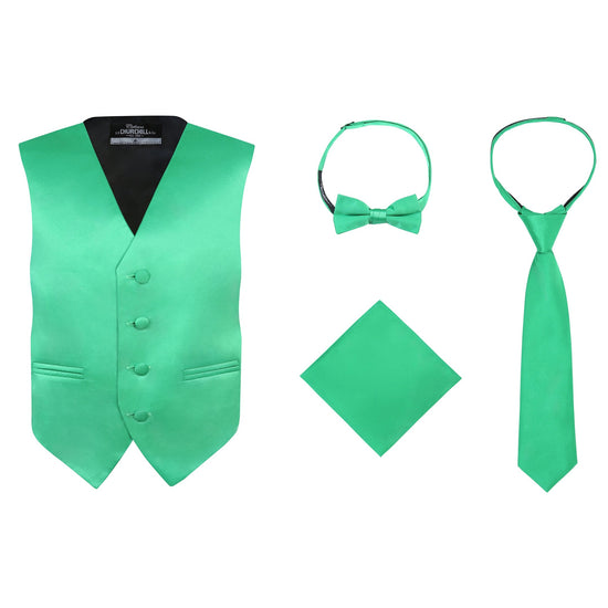 Boys 4 Piece Vest Set, with Bow Tie, Neck Tie & Pocket Hankie