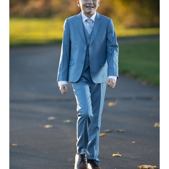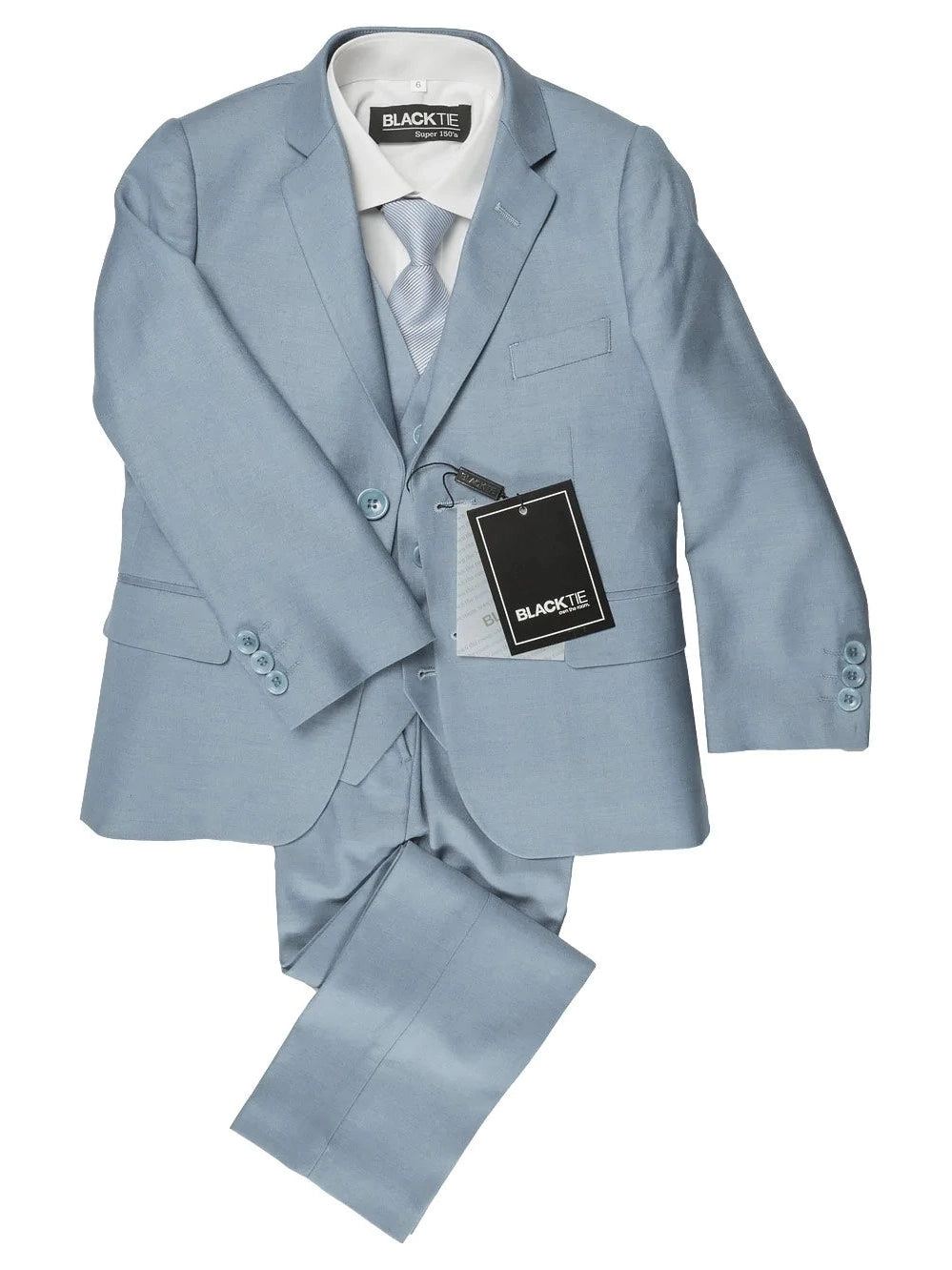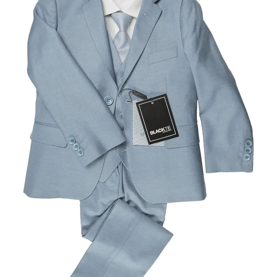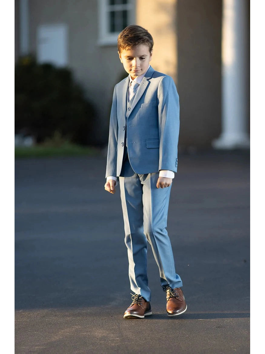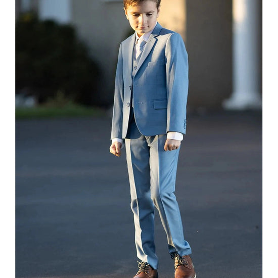 This 5-piece set includes the jacket, pants, shirt, vest, and bow tie. Perfect for weddings, communions, and every formal occasion. Your young man will look dapper and classic without a hefty pricetag.