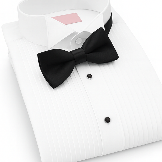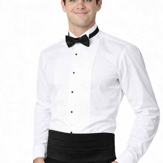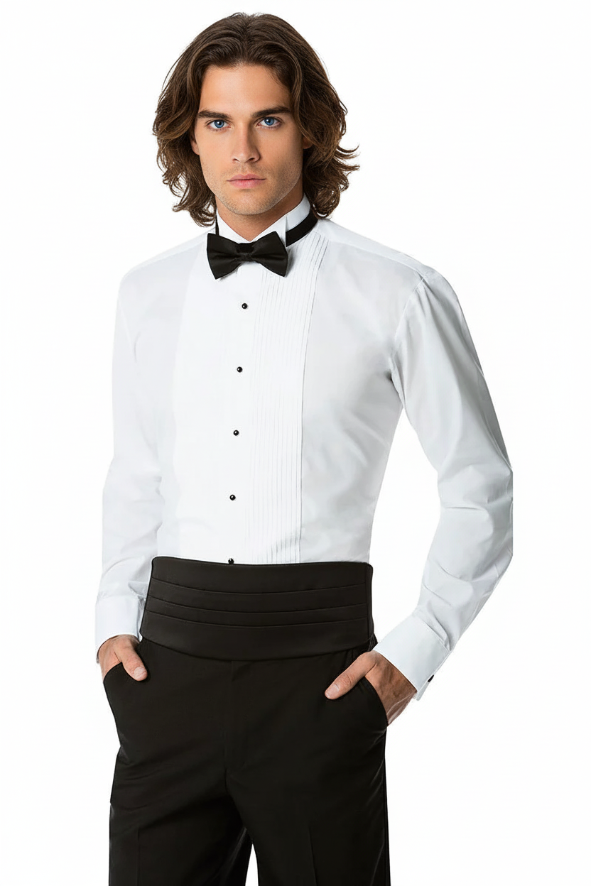 Classic Fit Tuxedo Shirt - White Pleated with Wing Tip Collar
