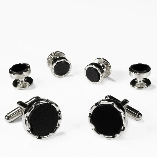 These bold and contemporary black and silver cufflinks and studs are ideal for every special occasion. When it's time to wear that great tuxedo, you've simply got to remember to dress to the nines and add those extra touches that separate the men from the boys.