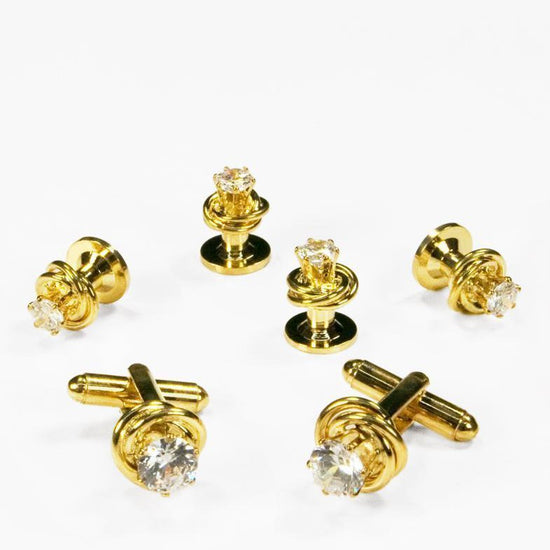 Crystal in Gold Loveknots Cufflinks and Stud Set