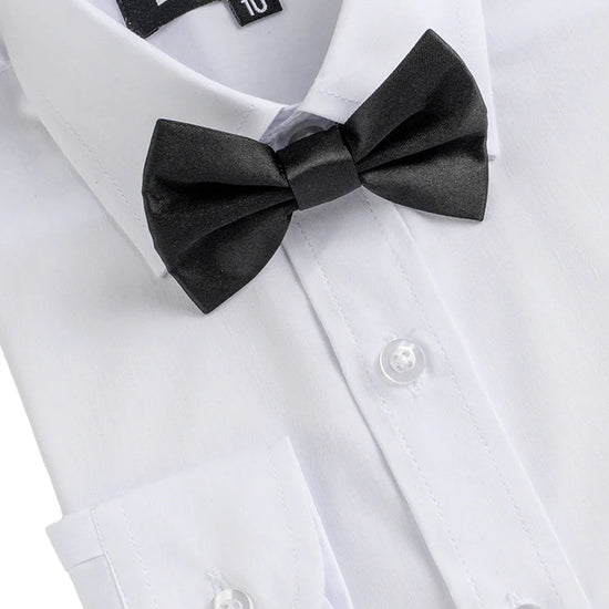Whether your young guy is a dapper veteran of the tuxedo or is preparing for his very first formal affair, this handsome boys' tuxedo package will make the child in your life look perfectly, pricelessly posh.