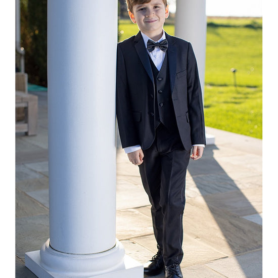 "Kingston" Boys Black 5-Piece Tuxedo Luxury Wool Blend