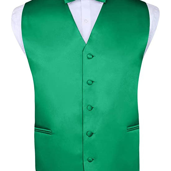 S.H. Churchill & Co. Men's 4 Piece Kelly Green Vest Set, with Bow Tie, Neck Tie & Pocket Hankie