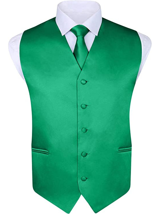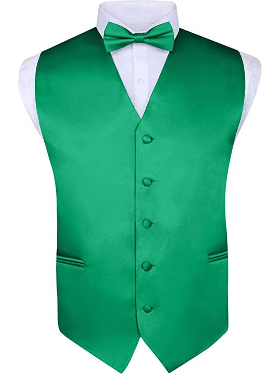 - EVERYTHING YOU NEED. Included in this formal vest set is a sleek solid-colored satin vest with a matching pocket hankie, pre-tied adjustable bow tie and self tie long tie for super easy accessorizing. All this for a great price. What could be better?