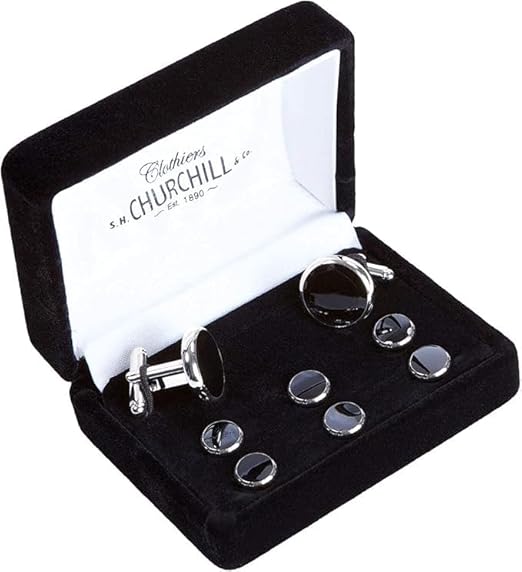 2 cufflinks & 6 shirt studs (black with faux silver trim)