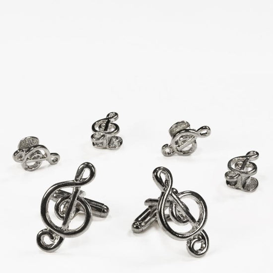 Wear your passion for the world to see. These whimsical treble clef cufflinks and studs are expertly crafted and elegantly designed in silver. A great gift for your favorite music lover!