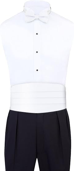 - The cummerbund, with its adjustable elastic pleated band, ensures a comfortable fit for waist sizes up to 46 inches